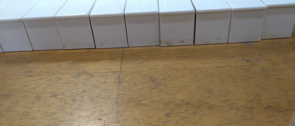作業の進みが遅いですが、お預かりしている鍵盤の白鍵のクリーニングの作業を。