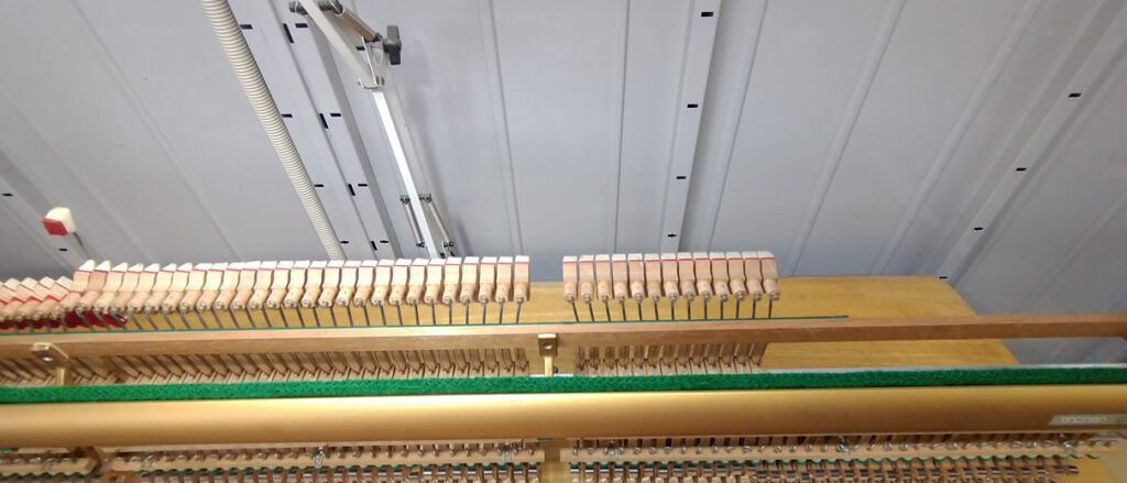 一件目は6年前に虫食いの修理をさせていただいたピアノで、その後虫が入ることなく、活躍中です。