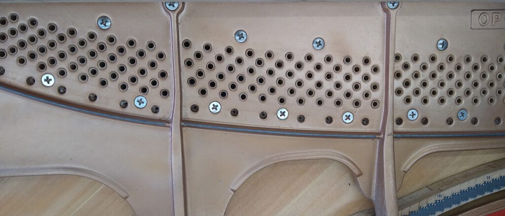 ご実家から移動されるのに、一度ピアノの状態を見に行かせていただいたところ、ご購入からかなりまめに、毎年か二年おきに調律されていて、そのままうつせるかな?と思いつつ中をみると、かなりひどい虫食いで、クリーニングと修理を行ってから、移動となったピアノです。