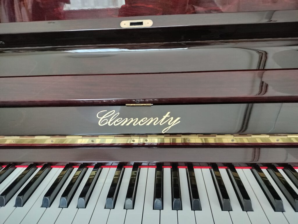 朝、お伺いしたお家のピアノは『クレメンティ』というブランドのピアノでした。