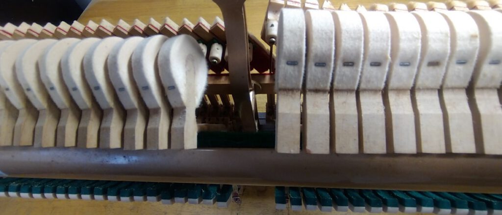 お母さまのピアノですが、途中、弾かない時期も、本当に毎年で、そのおかげか、虫食いもなく、修理もなく、とてもよい状態です。大切にされてきたピアノですね。