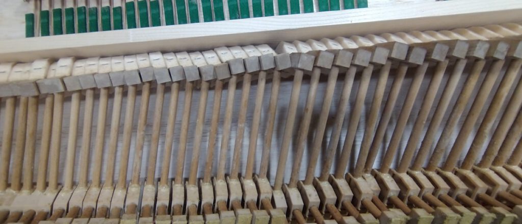 ご実家から移動してきたところ、ウイッペンの動きが大変悪く、そのせいで鍵盤もゆ~っくり戻ったり、アクション全体にカビがあったりで、状況のご説明をさせていただいていたところ、翌日には修理のご依頼をいただいておりました。