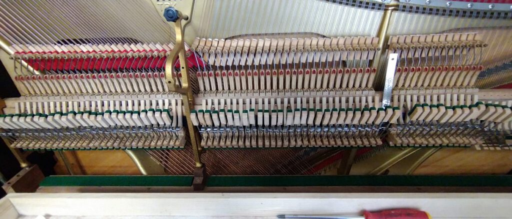 修理前は、打鍵後ハンマーが止まってしまうほど動きが悪く、いつもそうだったら、そのピアノはそういうピアノだと思うのかもしれないですね。