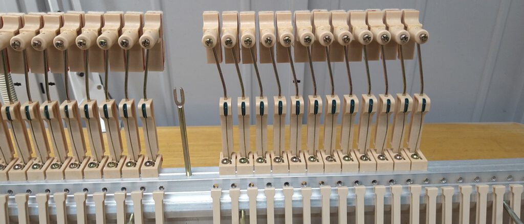 とにかくウイッペンの動きがすこぶる悪く、鍵盤がのっそり戻ってきて、弾くのに差し障っていたことが修理の発端でもあるので、ウイッペンのセンターピンを全交換していきます。